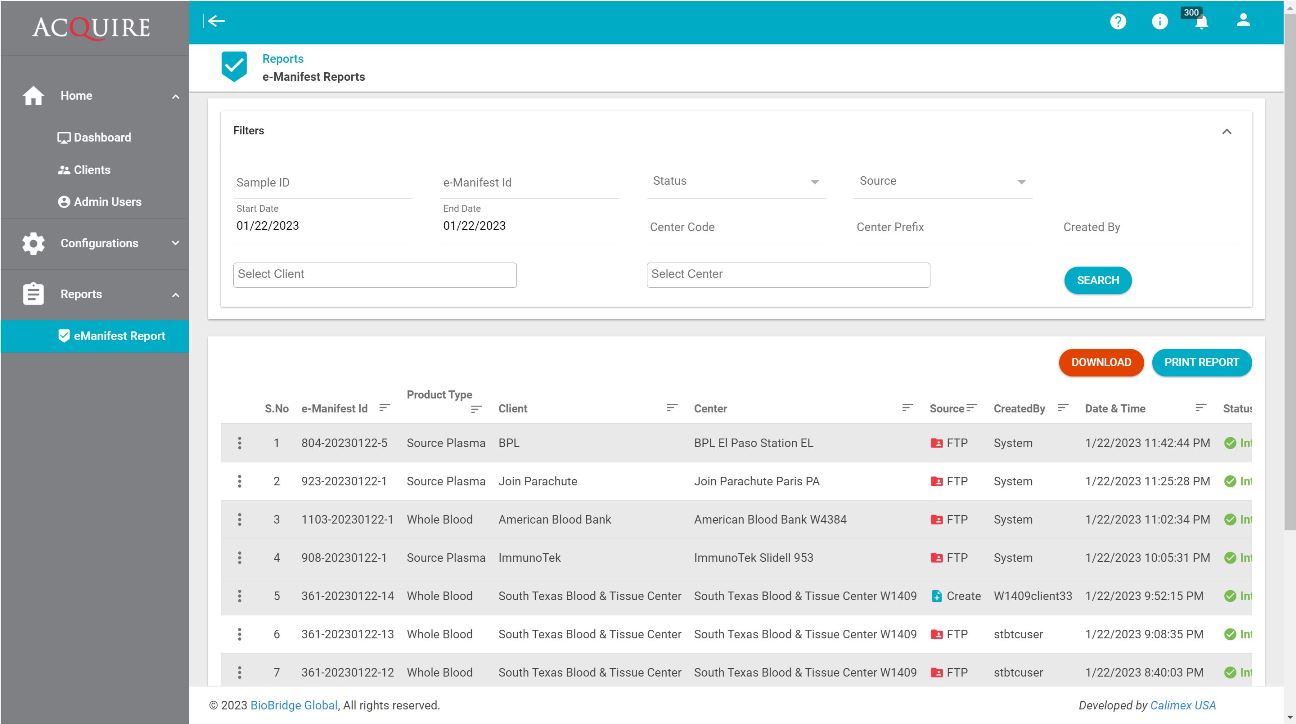 The customized eOrders Application empowers the blood center and its client hospitals to record,