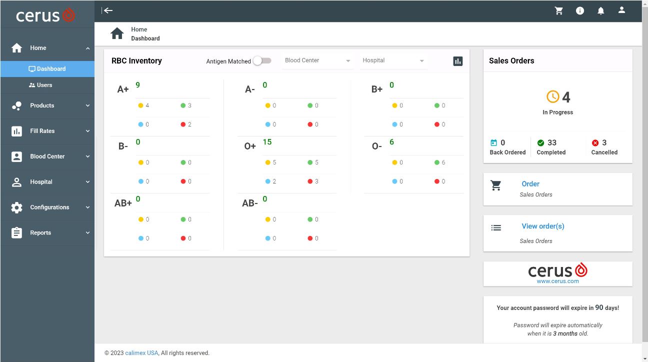 multiple client hospital locations in real time. A real-time Dashboard provides for each Blood Type